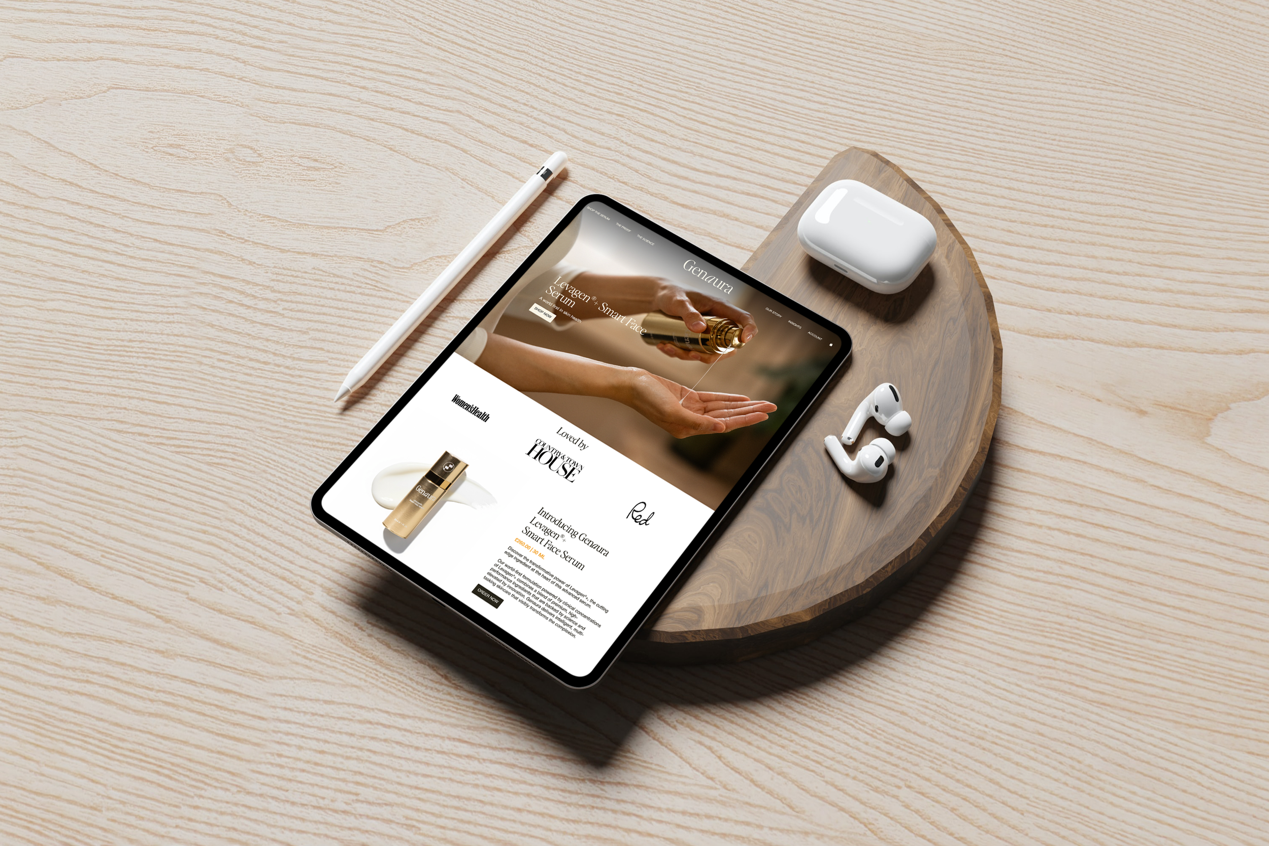 Genaura is a premium skincare brand rooted in science and ritual. Launching with a single hero product, a high-active facial serum powered by the ingredient Levagen®+, the brand needed to enter a crowded and competitive skincare market with clarity and confidence.