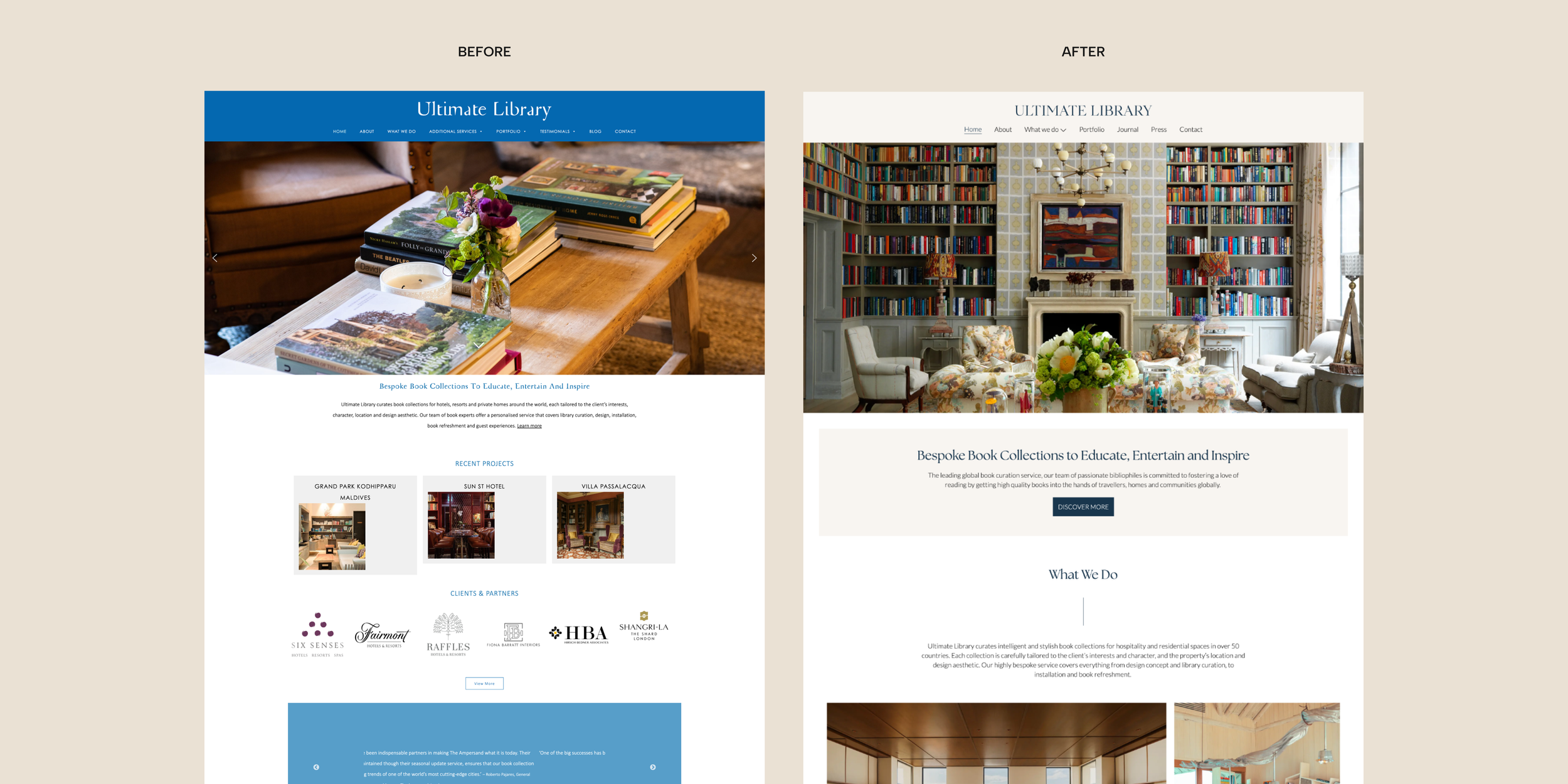 Content hierarchy and page layouts were designed to support storytelling while remaining easy to scan, ensuring users can quickly understand the service without feeling overwhelmed. The resulting website presents Ultimate Library as an expert, premium brand, with a digital experience that reflects the bespoke nature of its work and encourages meaningful enquiries.