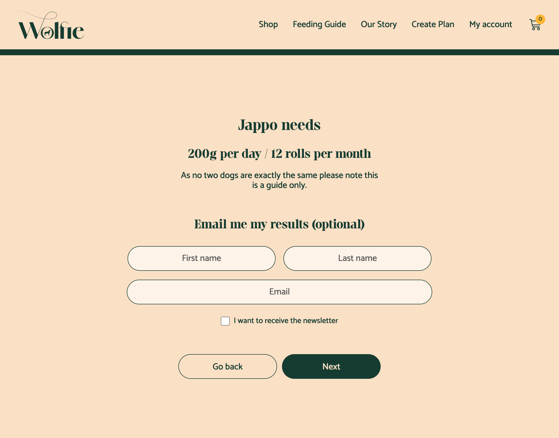 As Wolfie was a startup they didn’t have a website yet and I was tasked with designing one for them. They also needed a questionnaire designed, to help users figure out the best meal plan for them.