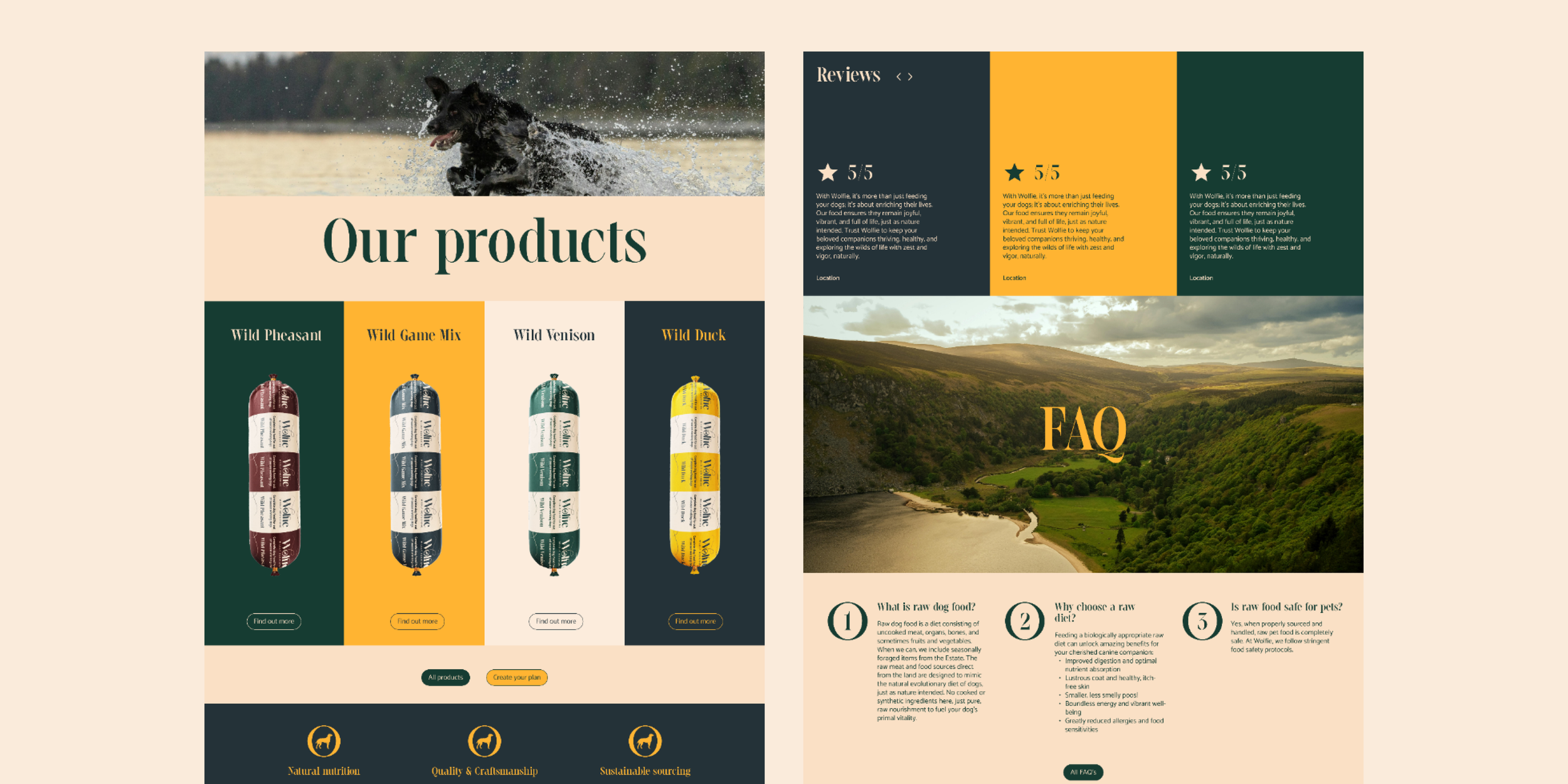 Website design for raw dog food producer Wolfie.